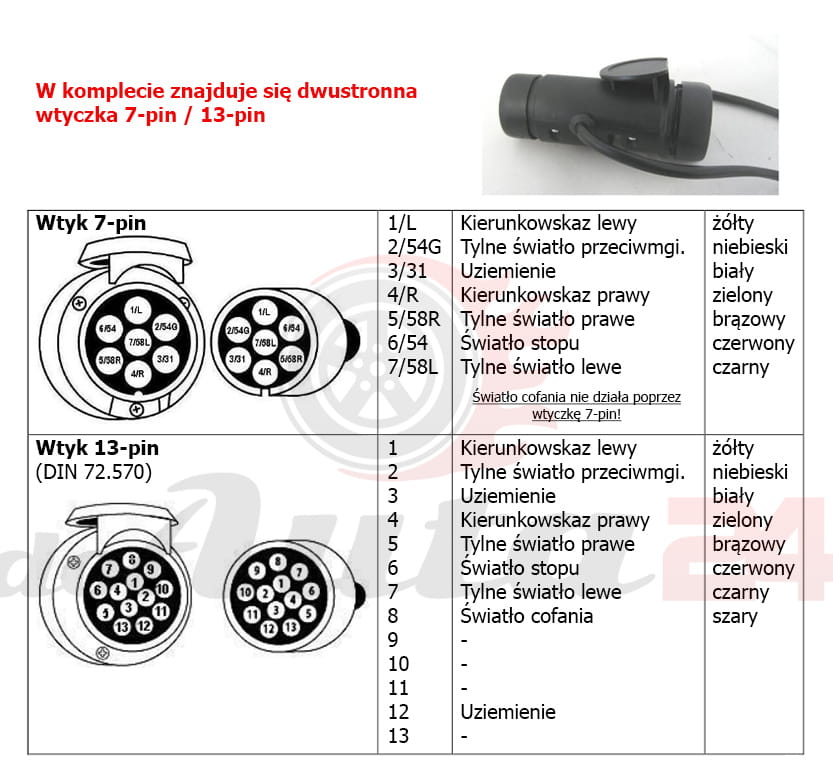 W komplecie jest Listwa świetlna (Belka świetlna) z miejscem do zamocowania trzeciej (dodatkowej) tablicy rejestracyjnej. Posiada ona wszystkie wymagane prawem światła