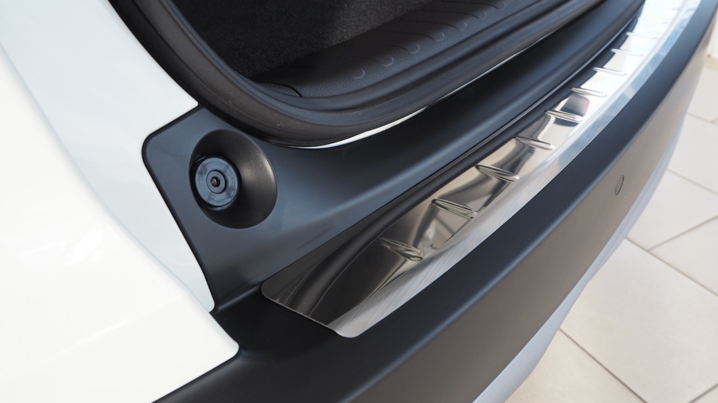 Podczas załadunku ciężkie bagaże stawiane są na lakierowanym tylnym zderzaku, co jest przyczyną powstających zarysowań. Skutecznym rozwiązaniem jest zastosowanie tłoczonej nakładki na zderzak wykonanej ze stali nierdzewnej.