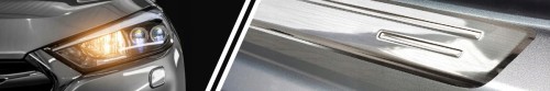 Listwy progowe wykonane są z kwasoodpornej stali szlachetnej najwyższej jakości, odpornej na trudne warunki atmosferyczne i drogowe (sól, piach, wilgoć).