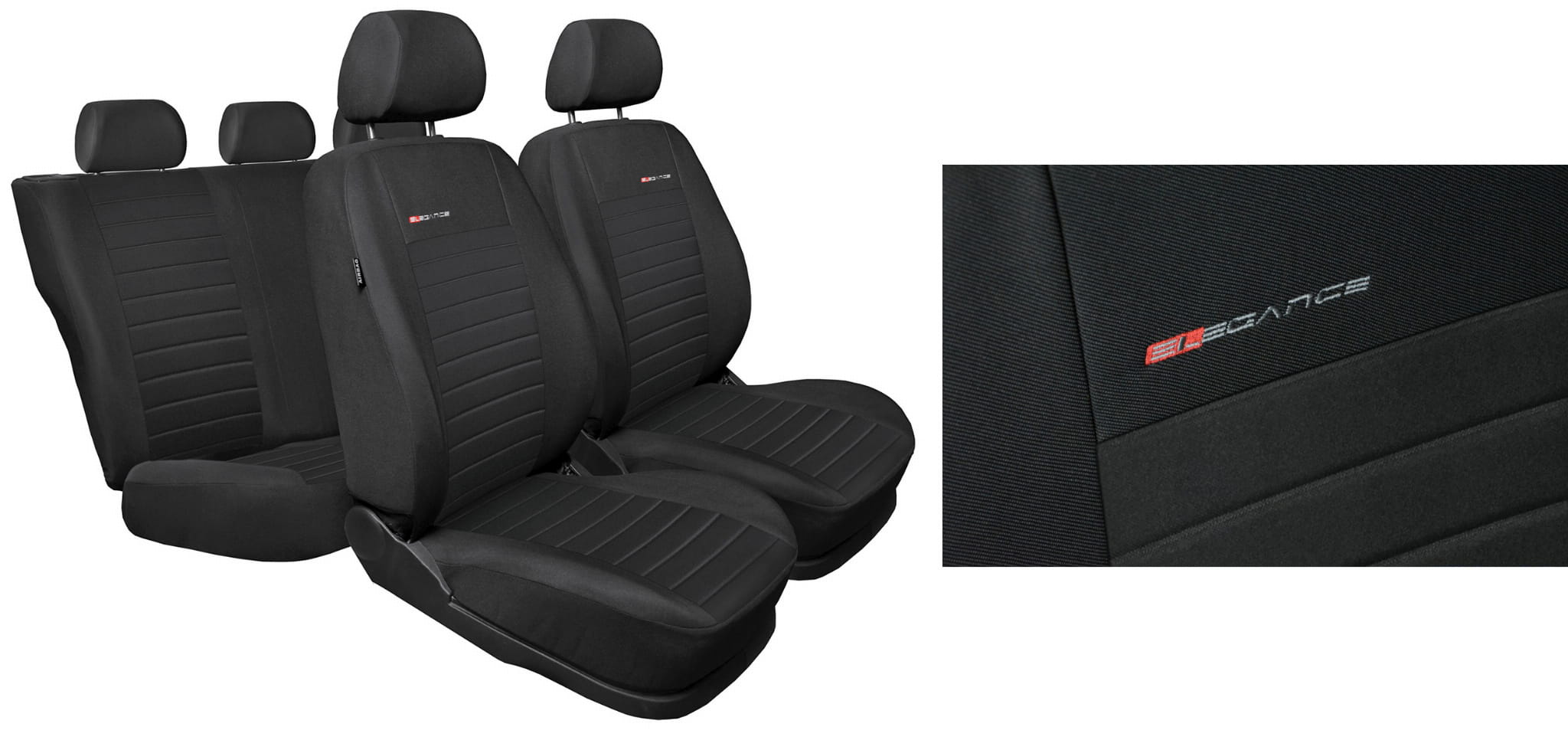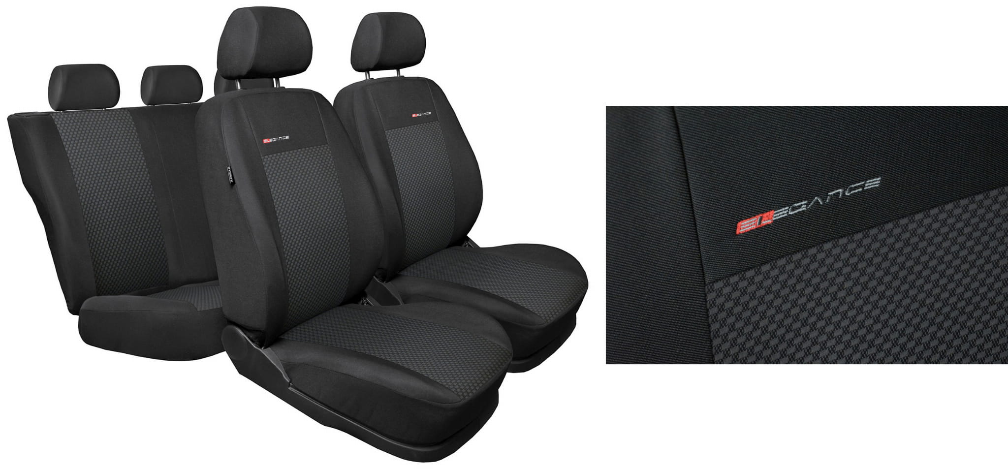 Pokrowce ELEGANCE wykonane zostały z wysokiej jakości weluru oraz wytrzymałej dzianiny poliestrowej w bocznych częściach pokrowca.