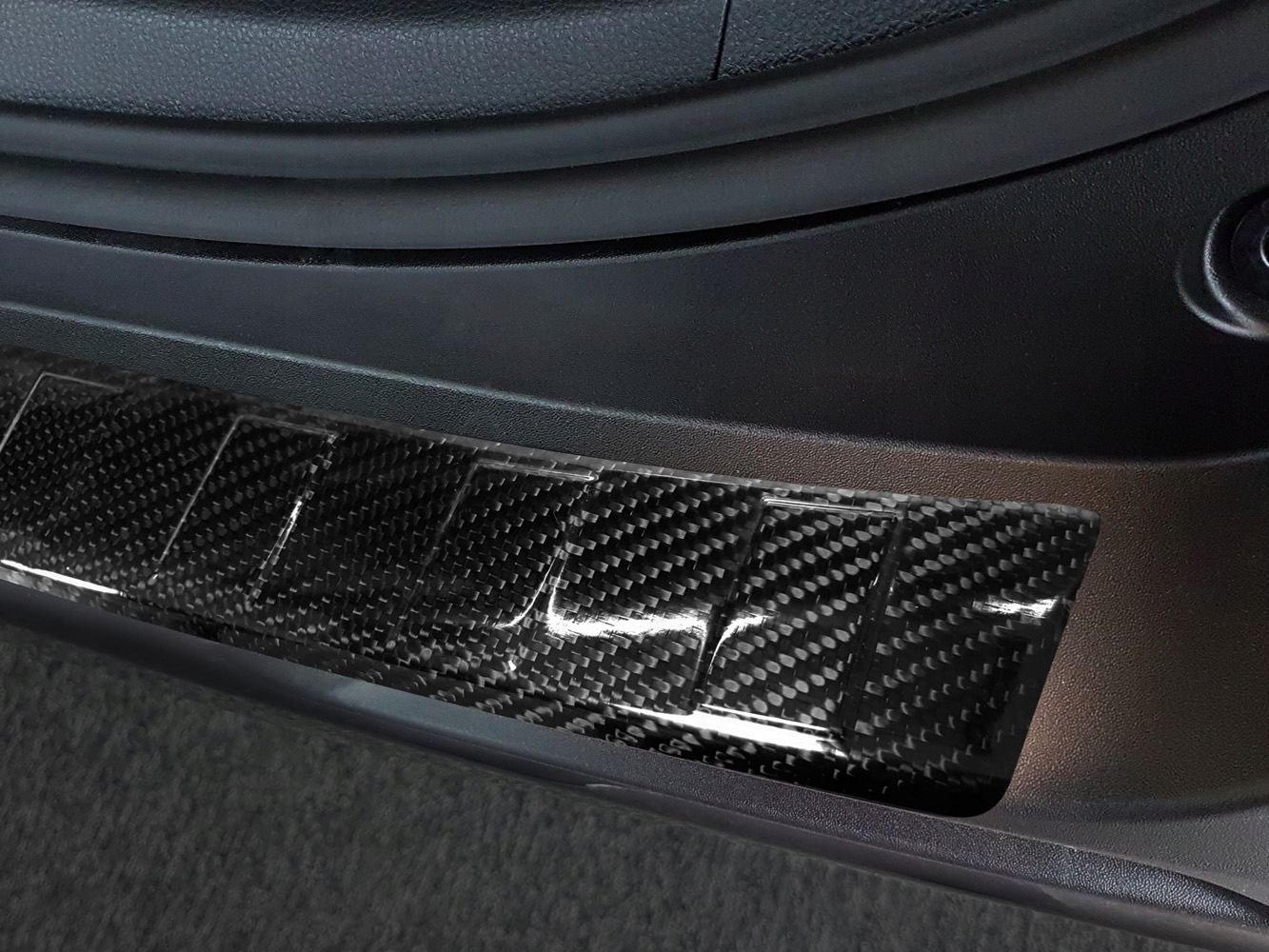 Materiał z którego jest wykonana - oryginalne włókno węglowe Carbon Fiber - to obecnie najbardziej pożądane tworzywo w motoryzacyjnej sztuce produkcji. Z racji na fakt, iż Carbon jest pięciokrotnie bardziej wytrzymały niż stal o tej samej wadze używa się go między innymi w lotnictwie oraz sportach motorowych. Nasze listwy są dodatkowo wzmocnione żywicą wysokiej jakości, nadającą im połysk oraz ekskluzywny charakter. Duża odporność na uszkodzenia mechaniczne i chemiczne w połączeniu z nietuzinkową strukturą i ponadprzeciętna trwałość zapewnia użyteczność tej nakładki na lata.