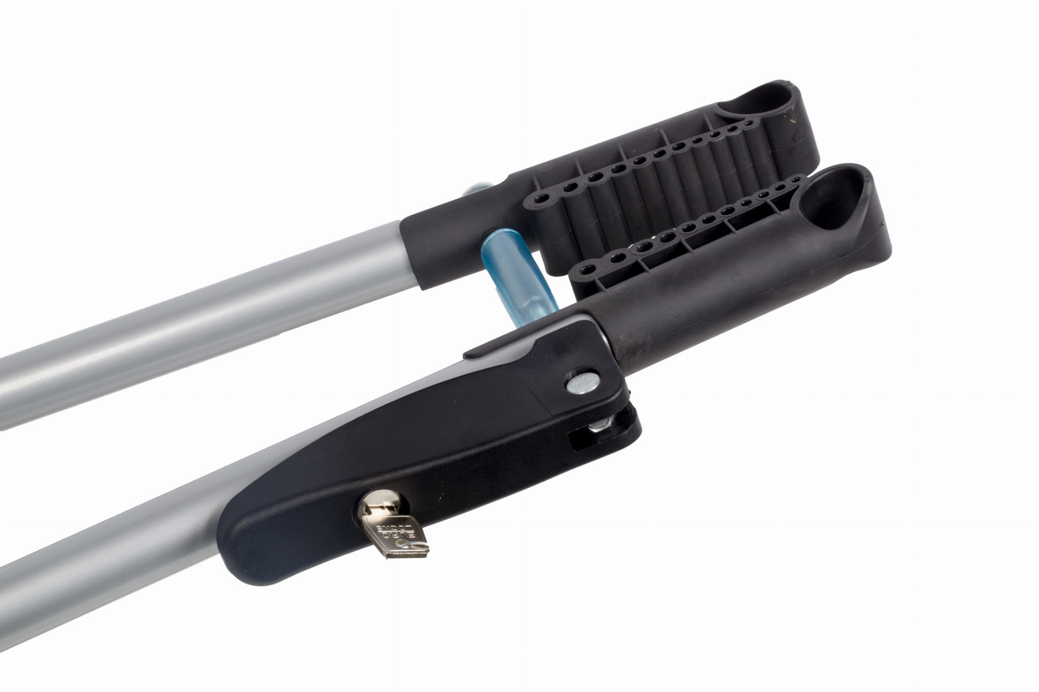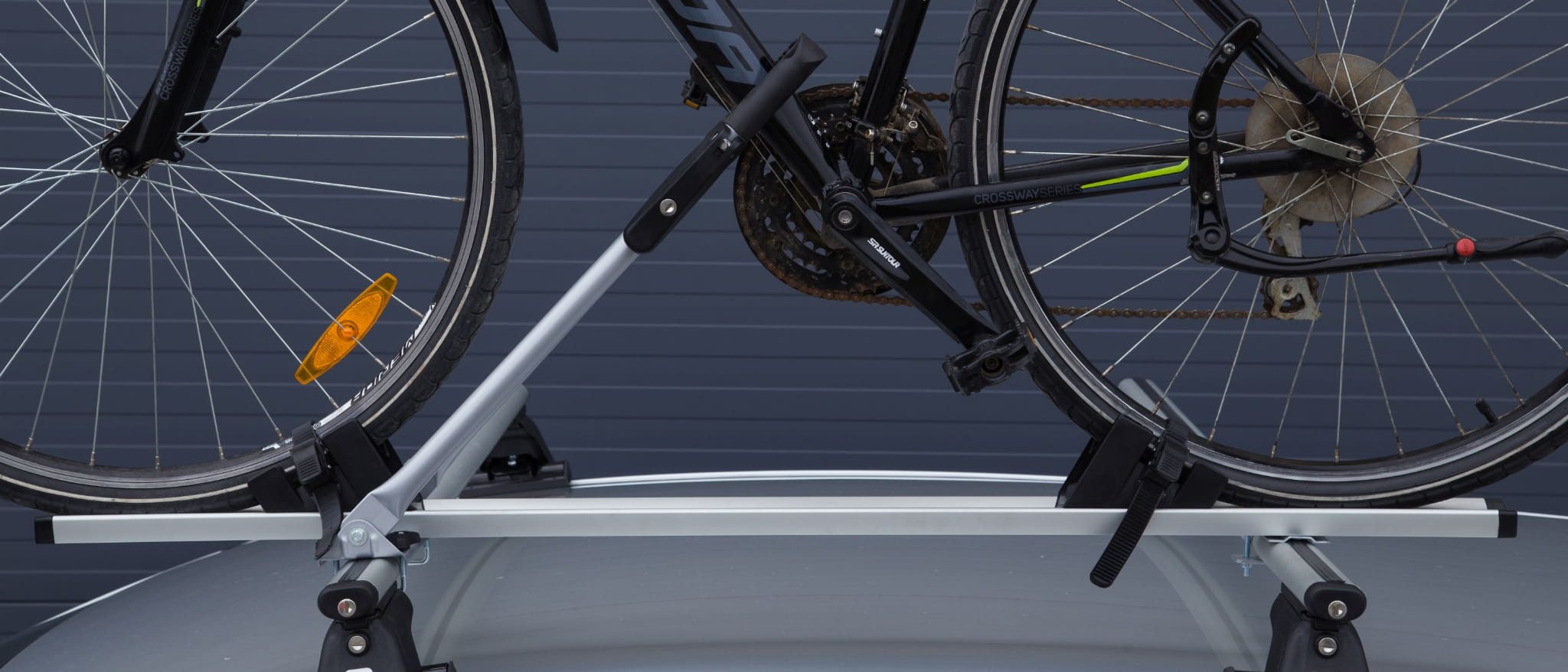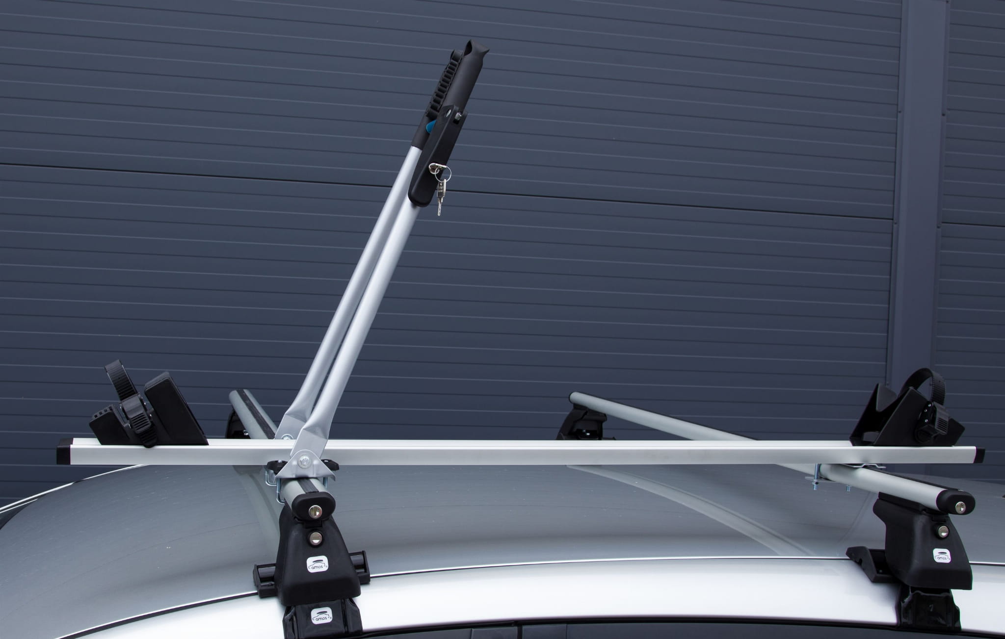 TOUR – uchwyt rowerowy dla wymagających klientów. Aluminiowy profil biegnący wzdłuż na którym są przesuwane podstawki pod koło trzymające trwale zamocowanym paskiem z klamerką do wygodnego zaciągnięcia paska. Uchwyt mocujący ramę wygodnie i szybko zamykany klamrą (na zamek). W zestawie elementy mocujące do belek stalowych (jarzmo do 53 mm) i aluminiowych (wsuwki w belkę)