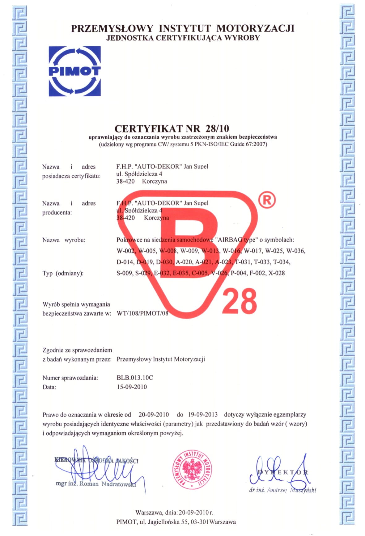Oczywiście rozwiązanie to jest wielokrotnie przebadane oraz certyfikowane.Badania potwierdzone certyfikatem bezpieczeństwa zostały wykonane przez Przemysłowy Ośrodek Motoryzacji (PiMOT) z siedzibą w Warszawie, który zatwierdził bezpieczeństwo produktu, wydając certyfikat bezpieczeństwa "B".