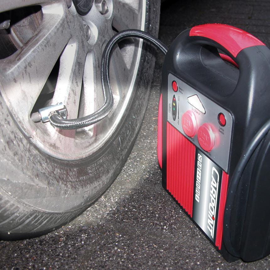 Urządzenie zostało dodatkowo wyposażone w diodowy tester akumulatora oraz kompresor.